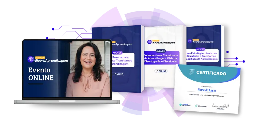 É um evento online exclusivo, com aulas intensivas conduzidas por Luciana Brites — especialista com mais de 25 anos de experiência em neuroaprendizagem e transtornos de aprendizagem, que já guiou mais de 100 mil professores e psicopedagogos a atuar com segurança e clareza.